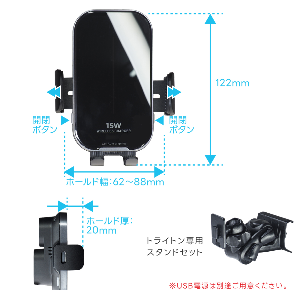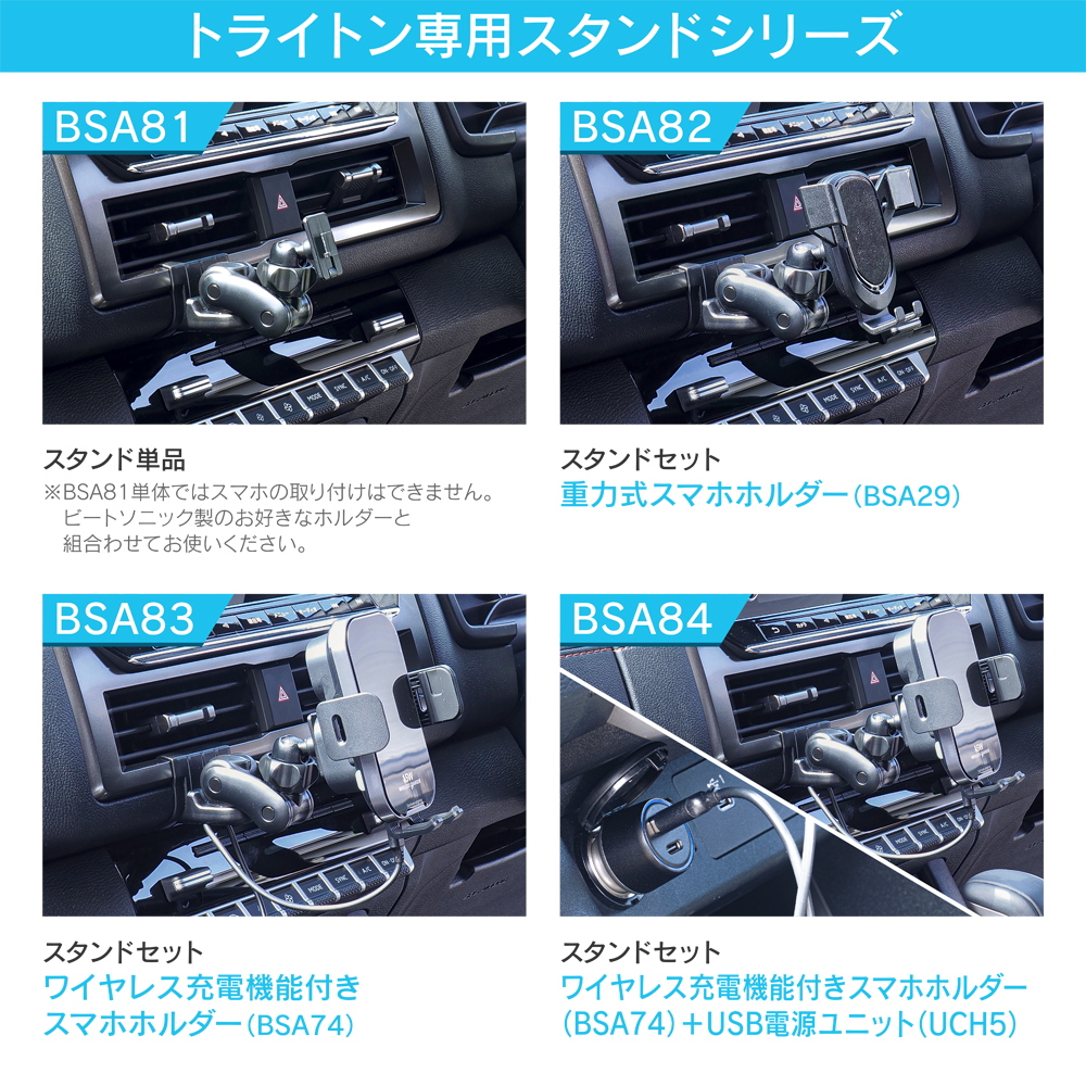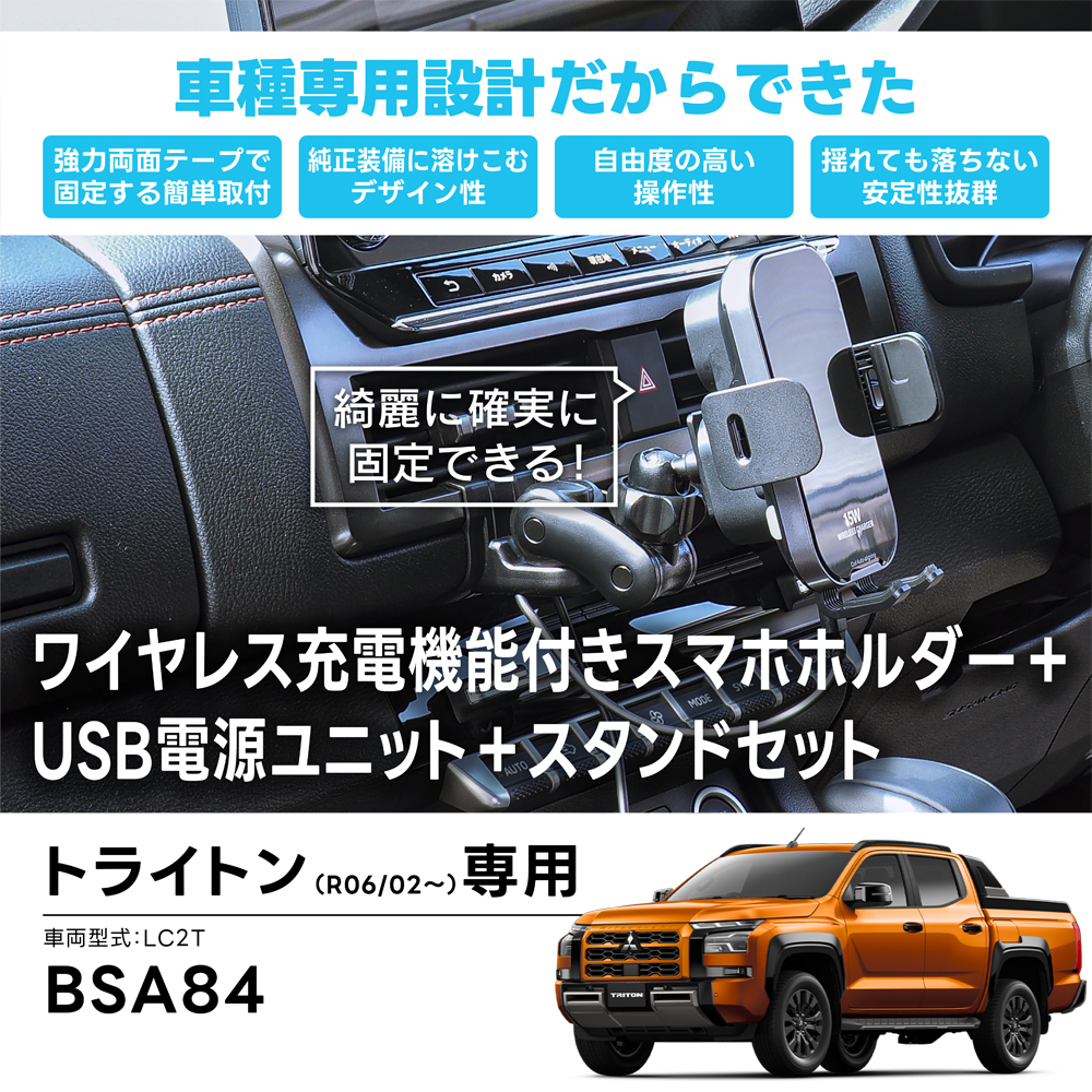 BSA84(トライトン専用スタンド+スマホホルダー(ワイヤレス充電機能付き)+USB電源ユニット)