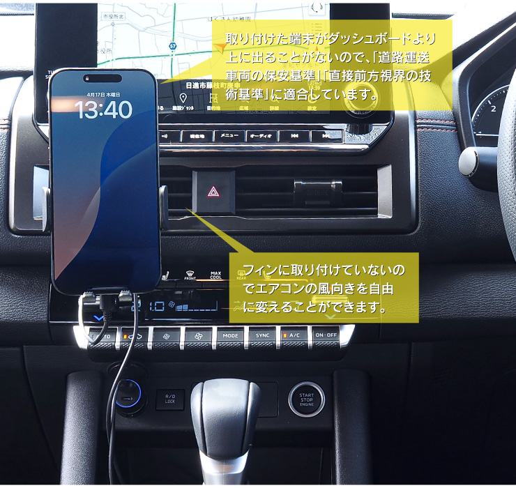 ※自動車の安全性向上の観点から、運転者席からの視界を妨げるご使用はしないでください。
