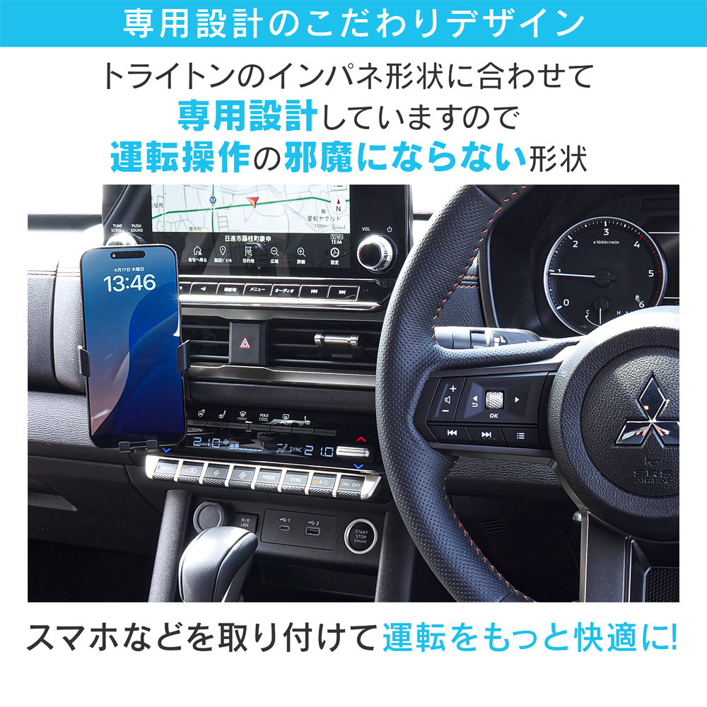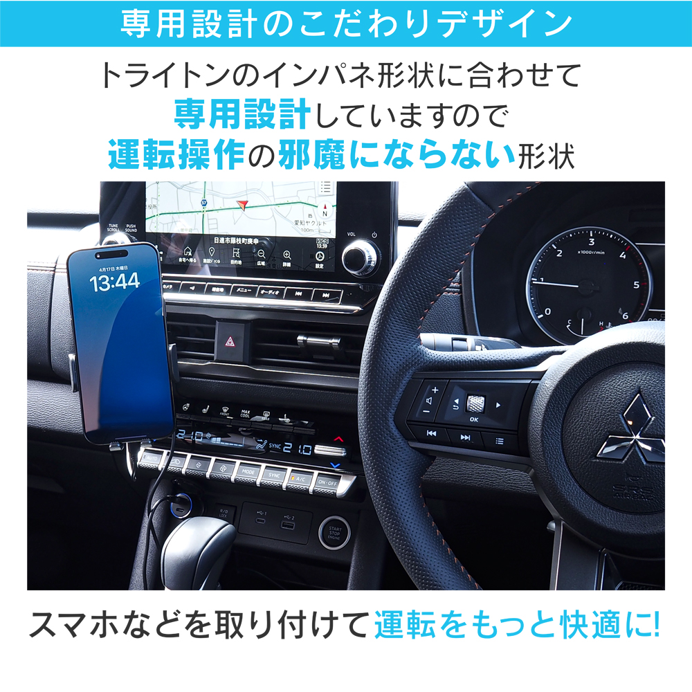 トライトンのインパネ形状に合わせた専用設計で、インテリアに自然に溶 け込みます。