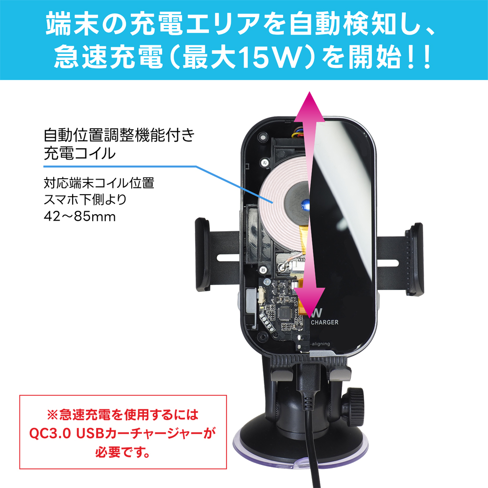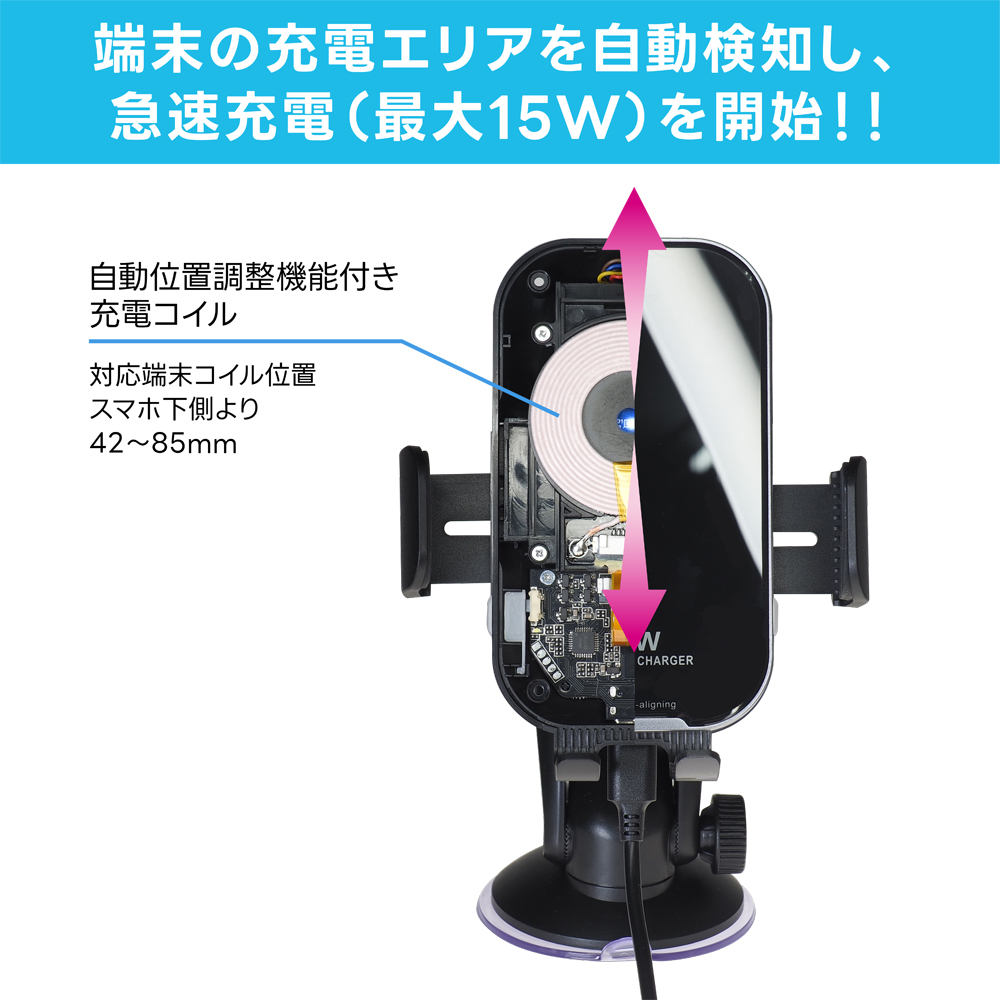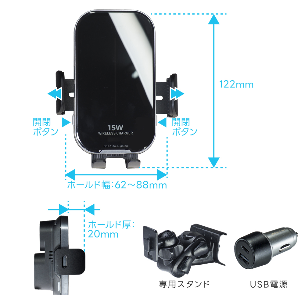 スマートフォンを自動でしっかりホールドできるホルダー(充電機能付)