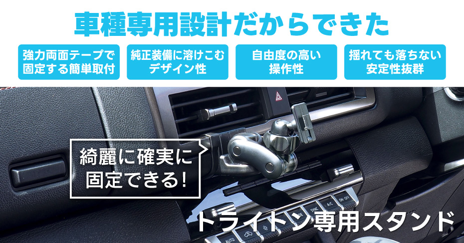 ■トライトン(LC2T)インパネ形状にぴったりフィットする専用スタンド。